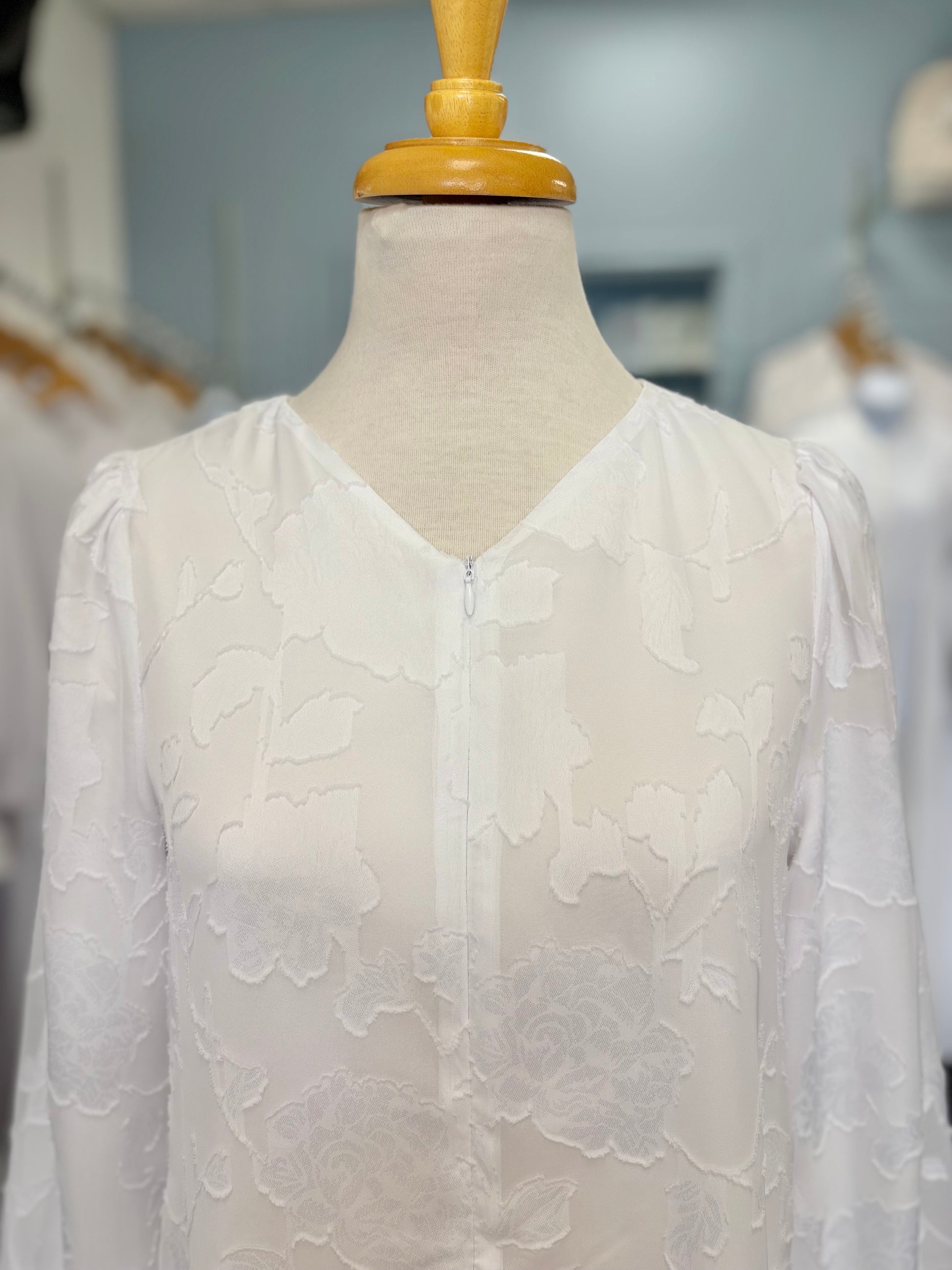 The Alora dress is a simple dress with an elegant take. This dress has a subtle v-neckline, a hidden zipper at the front, and a straight and comfortable silhouette. It has small gatherings at the back and an all over lace overlay for added detail! This dress has two side pockets and is fully lined.