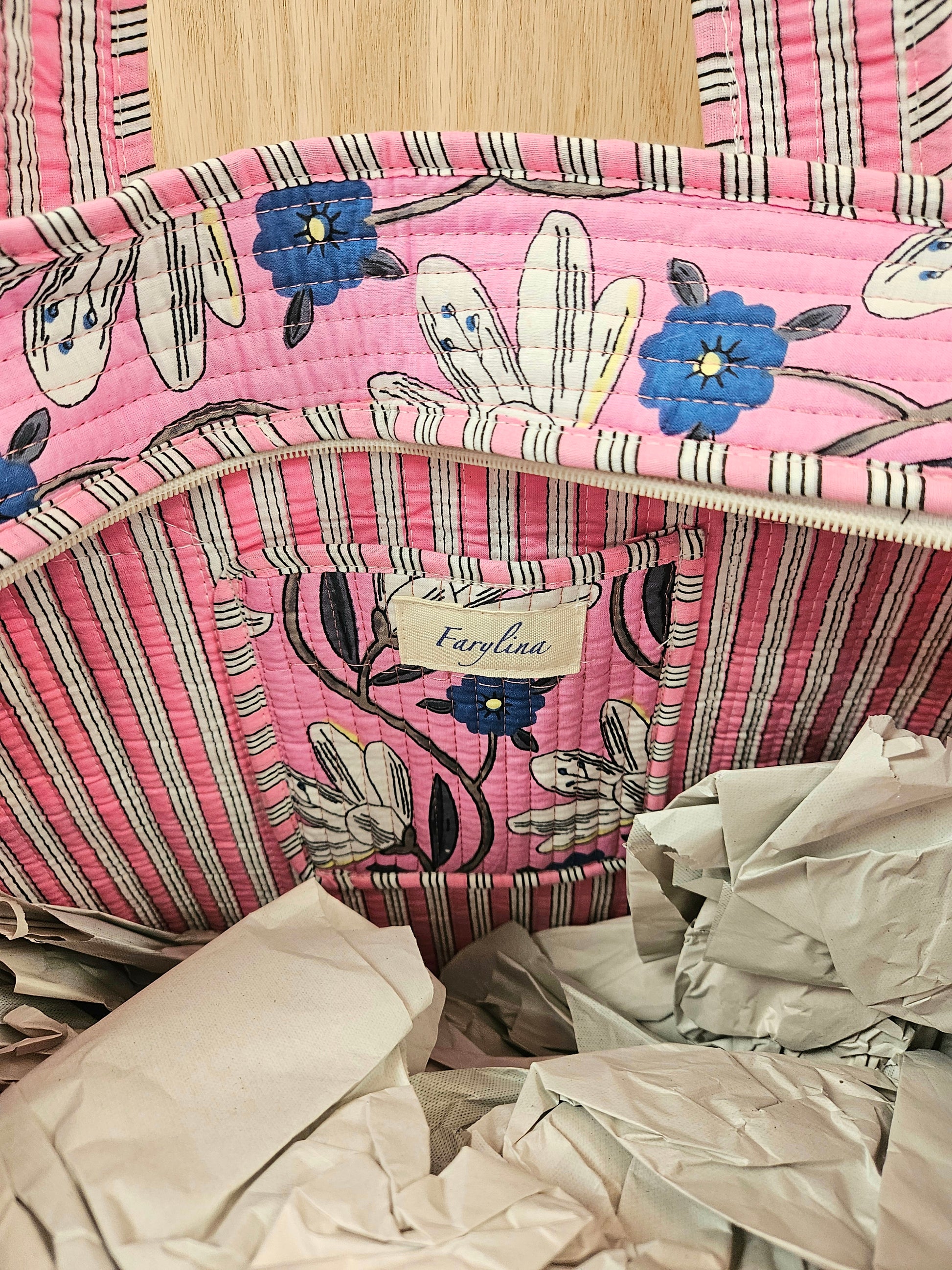 Big enough to hold everything you need, but still light-weight, this cotton quilted bag is perfect to take to the Temple and versatile enough to use it for any of your other outings. This bag has a zipper closure on top and an inside pouch pocket. This bag makes a great gift. Order one for yourself and one for a friend!