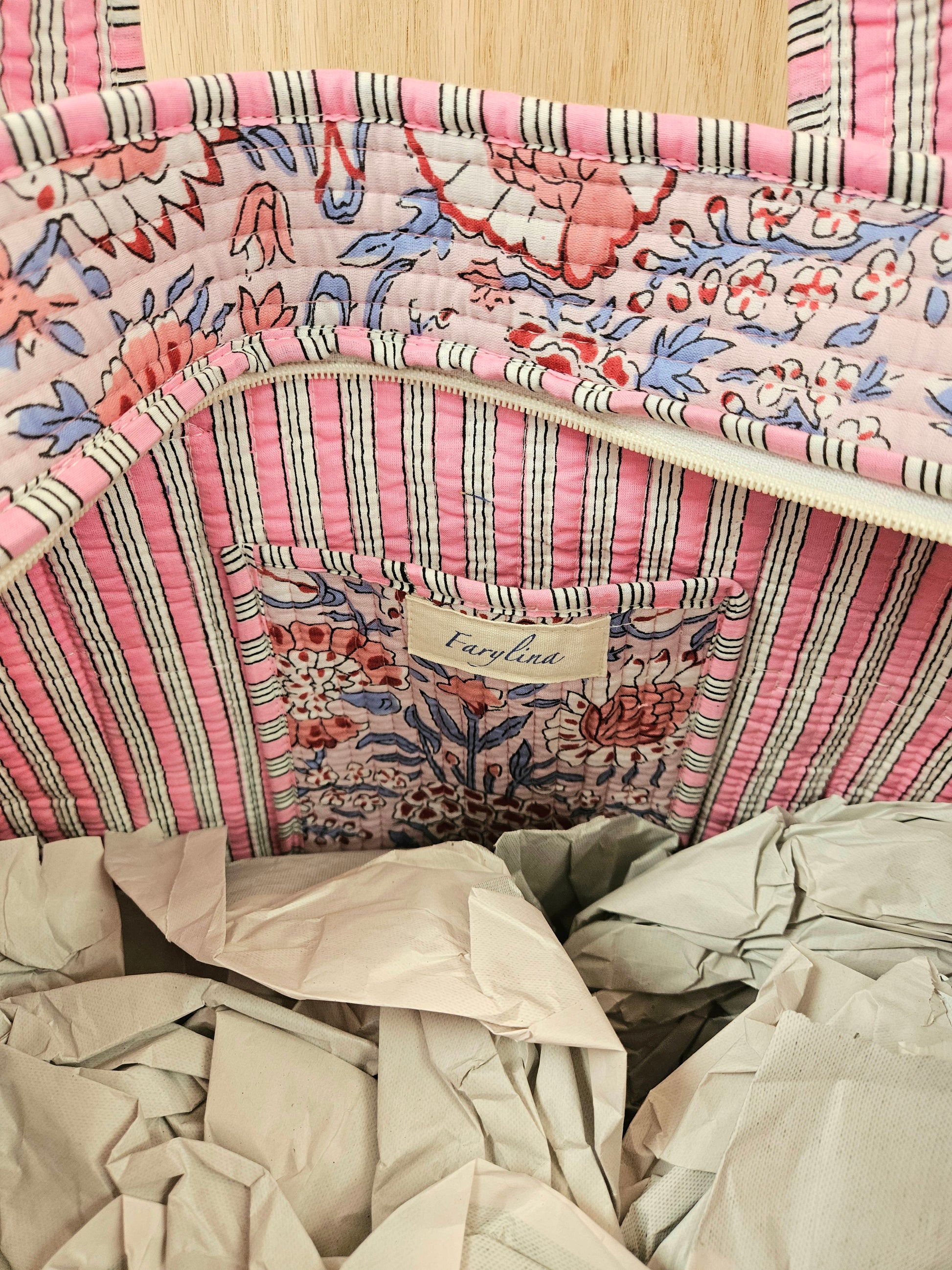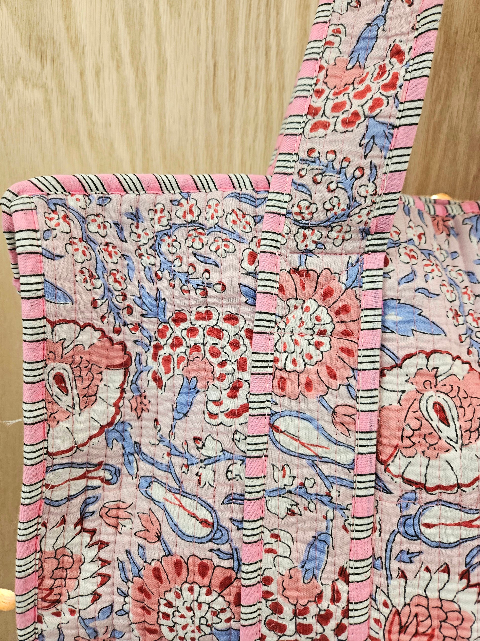 Big enough to hold everything you need, but still light-weight, this cotton quilted bag is perfect to take to the Temple and versatile enough to use it for any of your other outings. This bag has a zipper closure on top and an inside pouch pocket. This bag makes a great gift. Order one for yourself and one for a friend!
