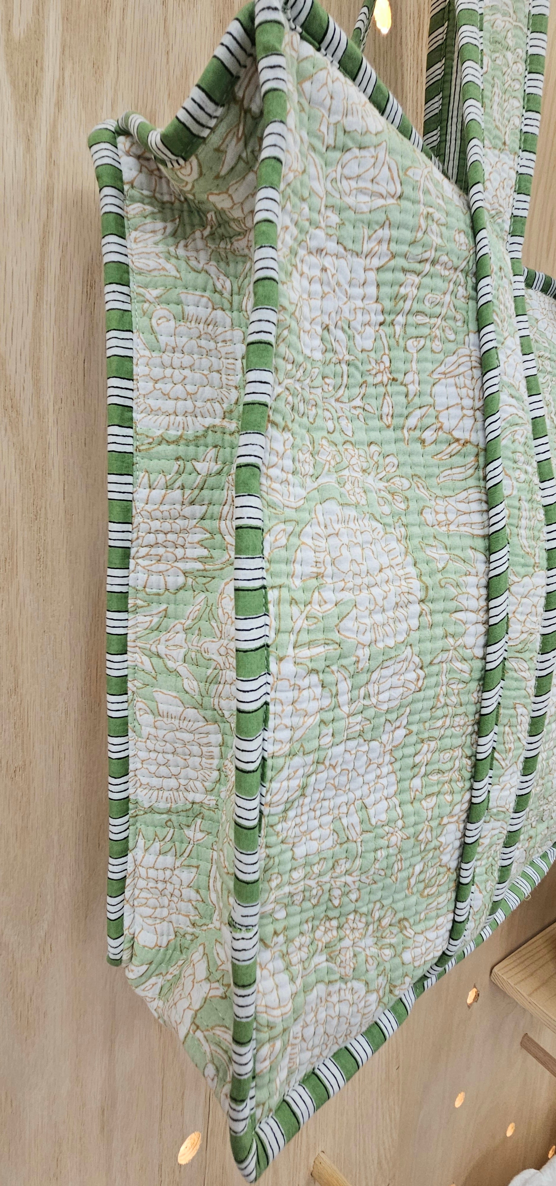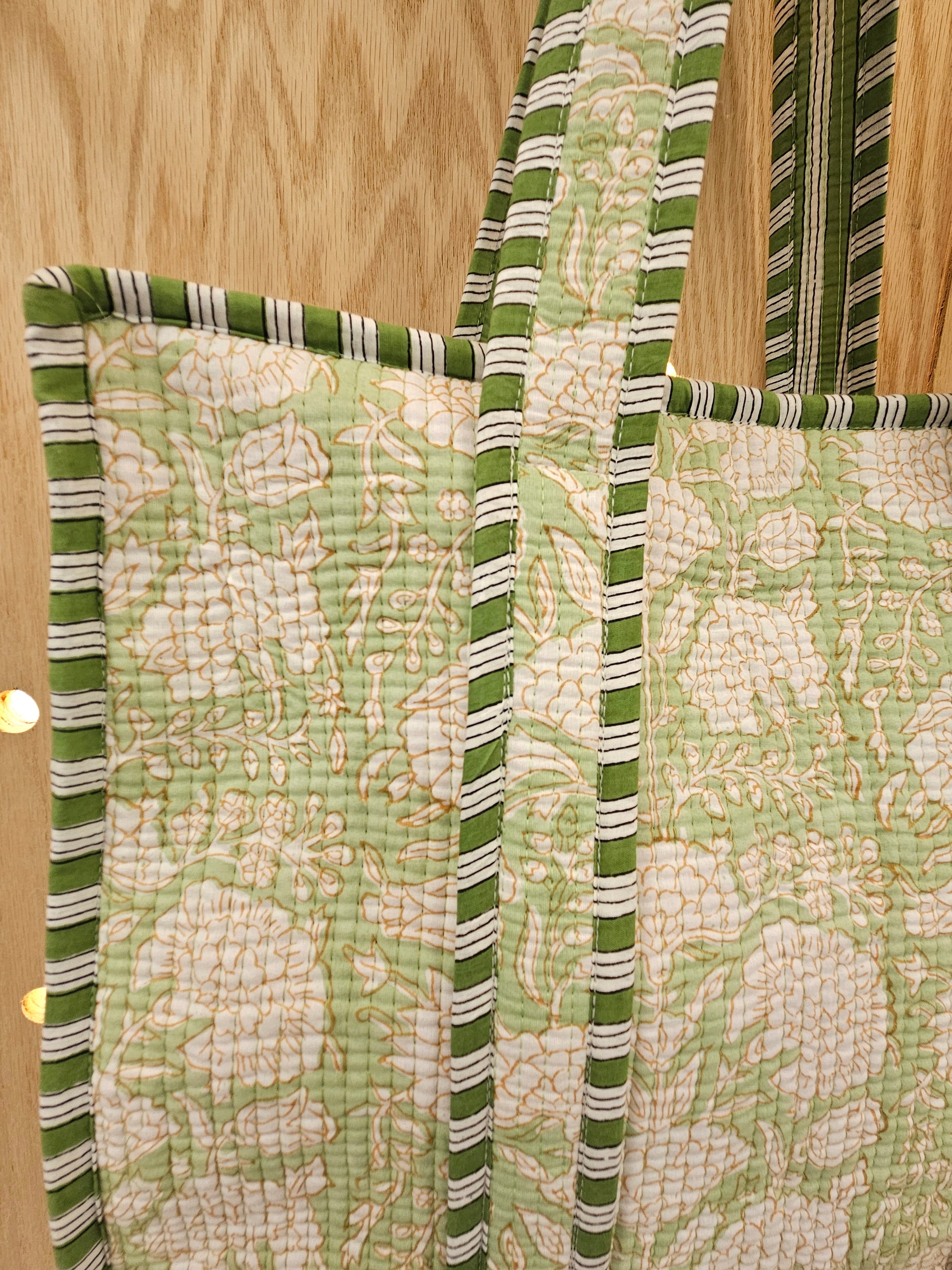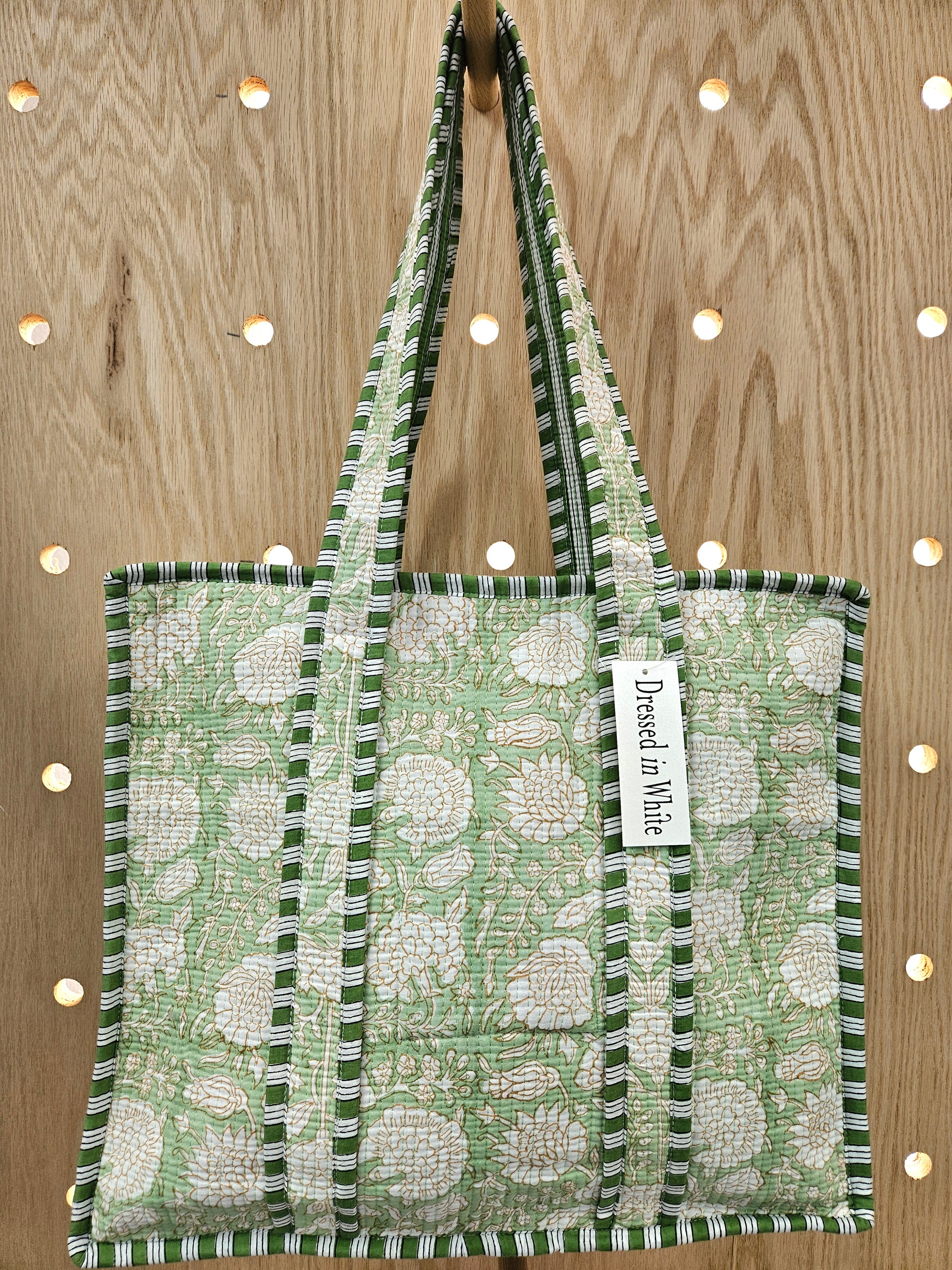 Big enough to hold everything you need, but still light-weight, this cotton quilted bag is perfect to take to the Temple and versatile enough to use it for any of your other outings. This bag has a zipper closure on top and an inside pouch pocket. This bag makes a great gift. Order one for yourself and one for a friend!