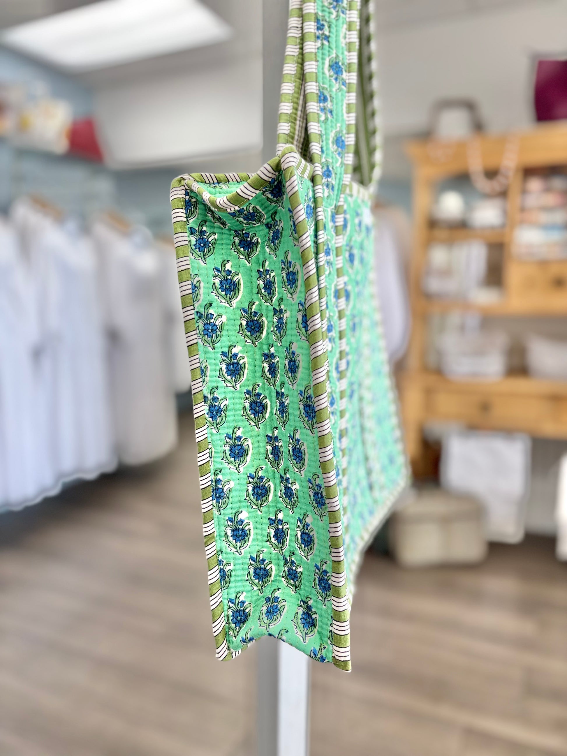 Big enough to hold everything you need, but still light-weight, this cotton quilted bag is perfect to take to the Temple and versatile enough to use it for any of your other outings. This bag has a zipper closure on top and an inside pouch pocket. This bag makes a great gift. Order one for yourself and one for a friend!