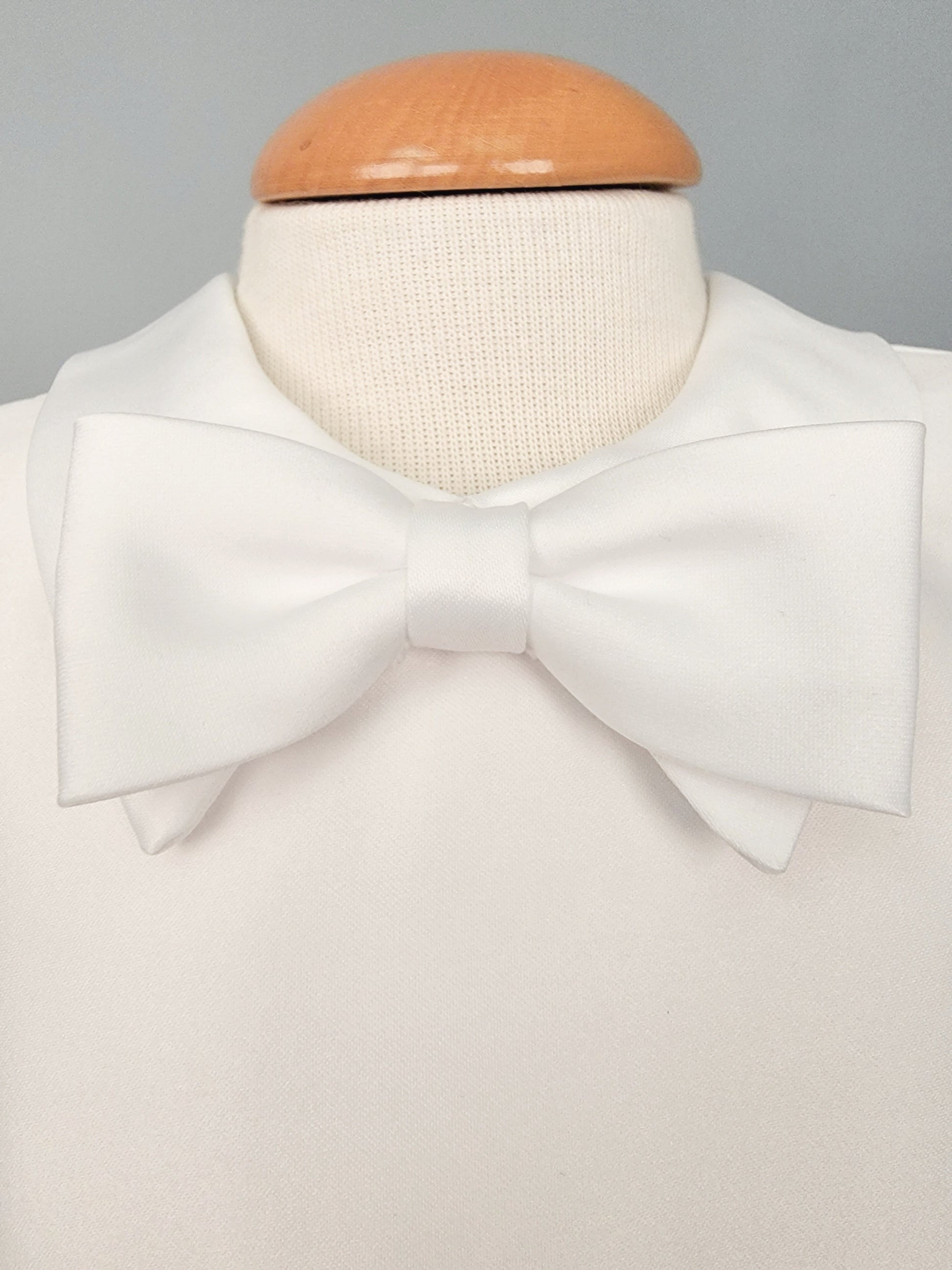 Made from a silky polyester material, this suit is comfortable and perfect for baby blessings, christenings, weddings, or any special occasion. This is a 4 piece set that includes a cap, long pants, a shirt, and a matching vest. The pants have an elastic waist, and the shirt buttons up the back for easy on and off. Bowtie is sewn on the shirt above decorative buttons. The vest and cap have a matching lattice pattern.