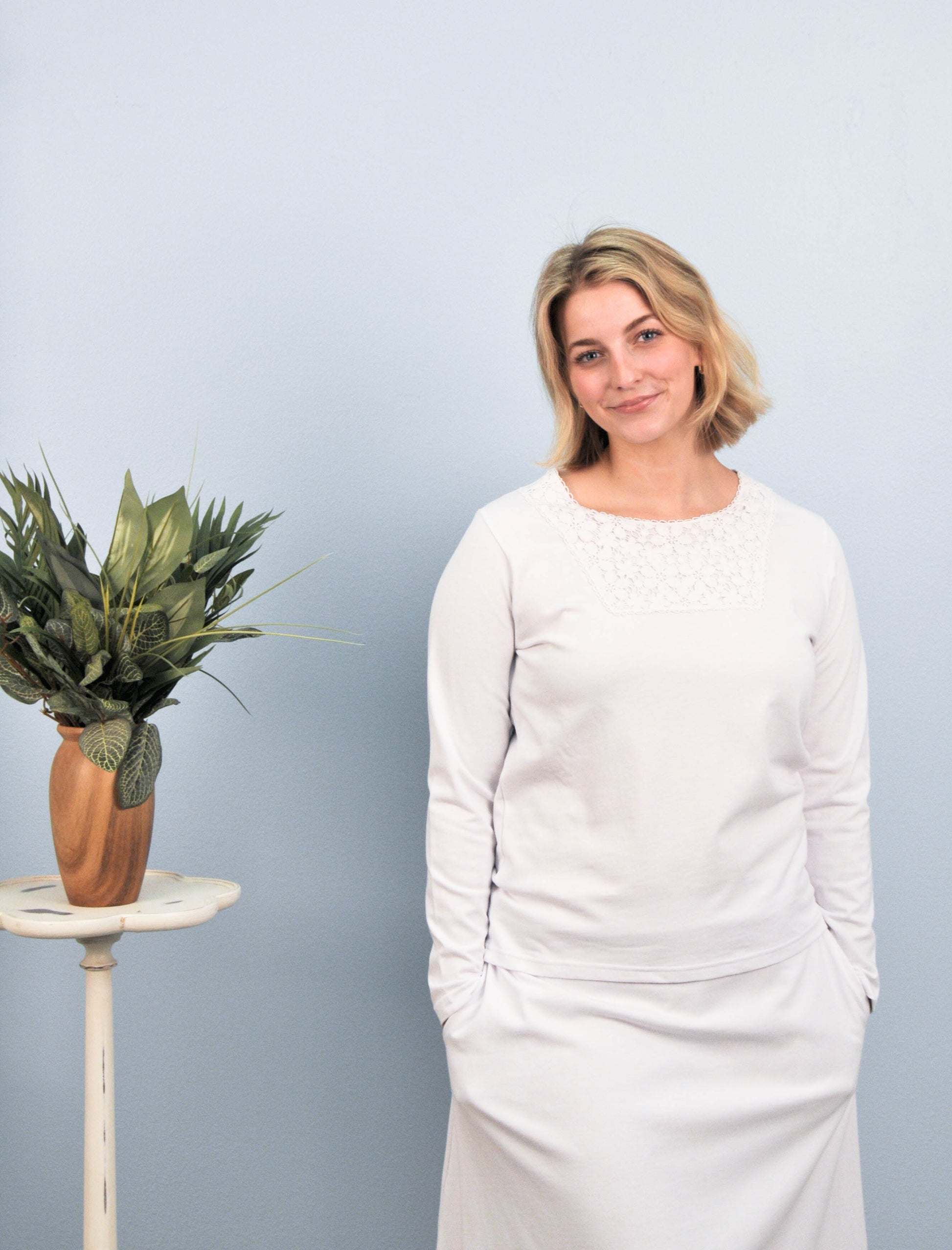Our dewdrop skirt is made from comfortable cotton, and is lined with a smooth polyester lining. It features two side pockets, an elastic waist, and is floor length. This skirt matches almost any top, and is perfect to wear in the temple or for any special occasion. Imported.