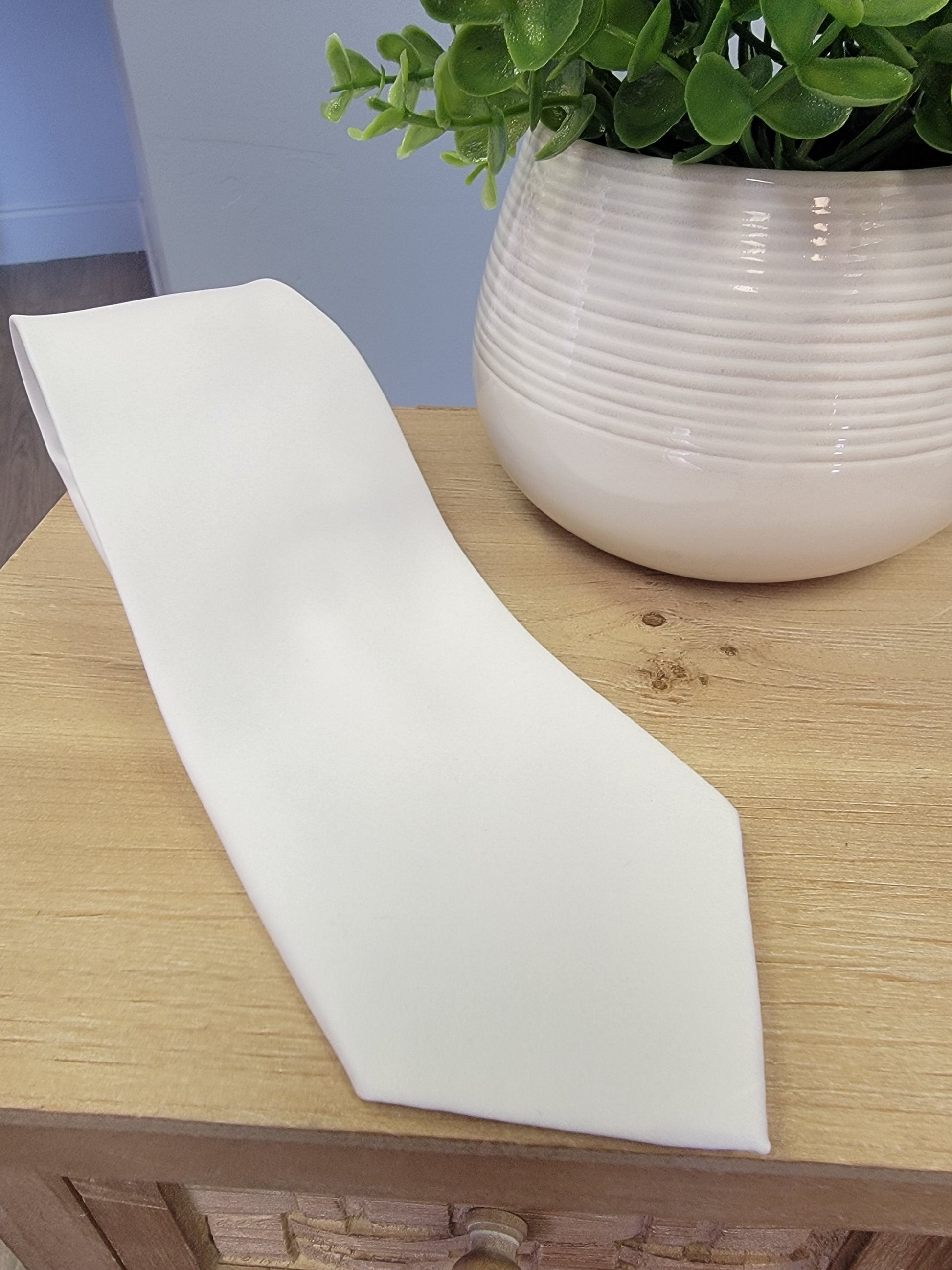 Made from satin polyester fabric, this tie is solid white and is ideal for LDS Temple visits and Temple workers. It measures about 55" long and 3.5" wide at the bottom.