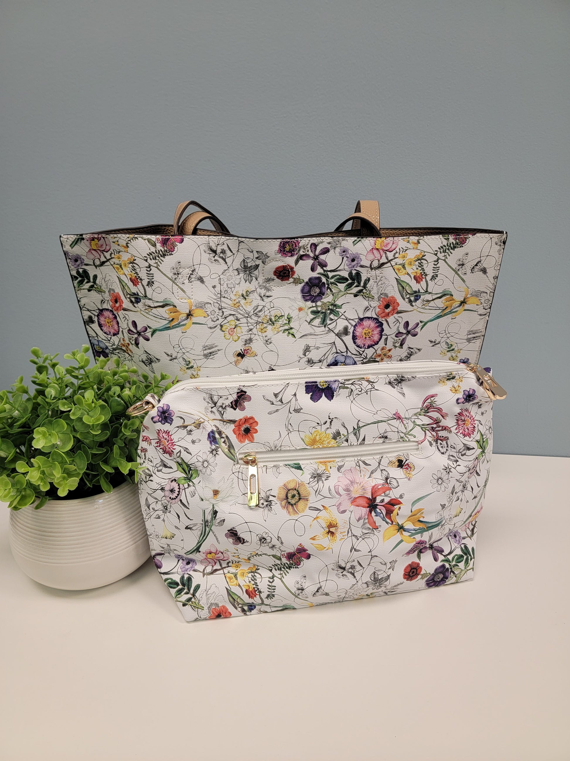 Reversable Tote White/Tan